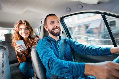 Uber Driver Sitting In A Car With Female Passenger Stock Photo And